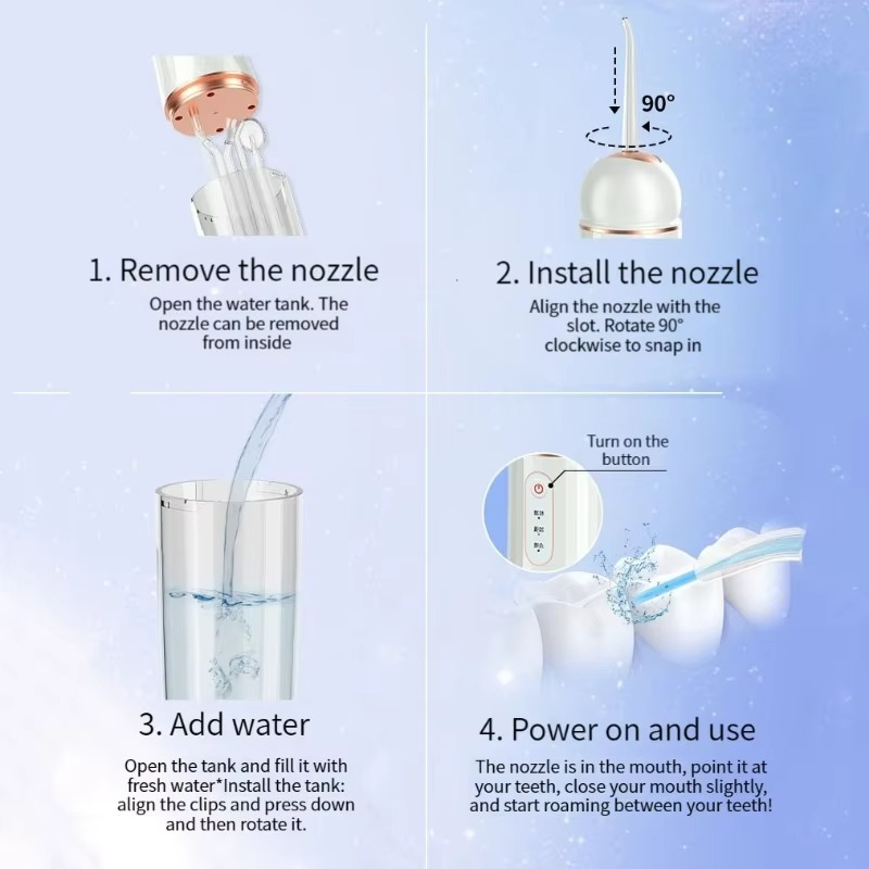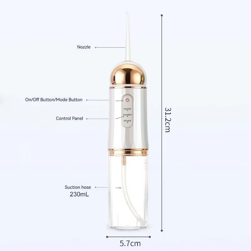 উত্তর: এতে পানি ভর্তি করে প্রেস করলে হালকা ওয়াটার প্রেসারে দাঁতের ফাঁক পরিষ্কার হয়।